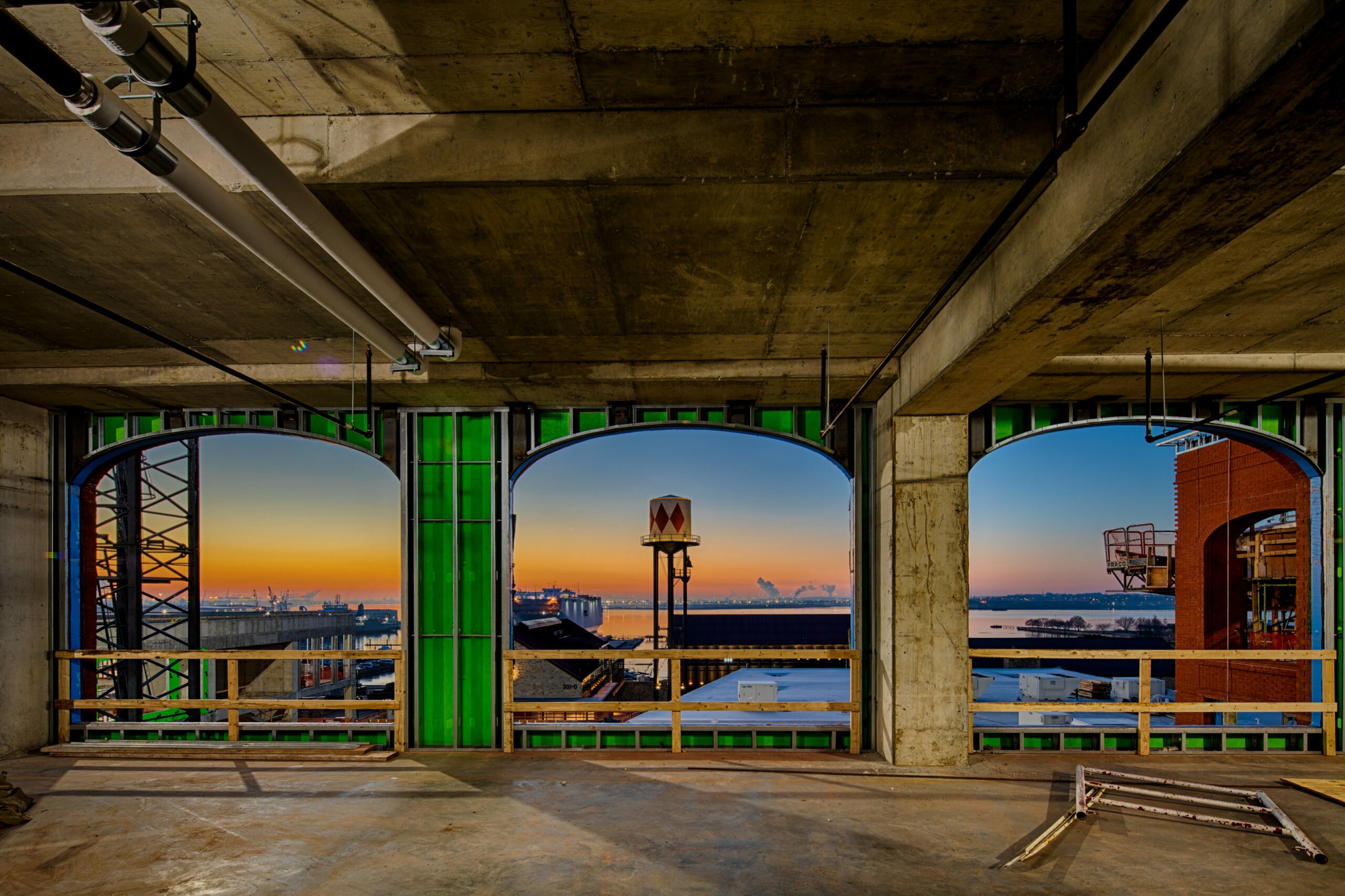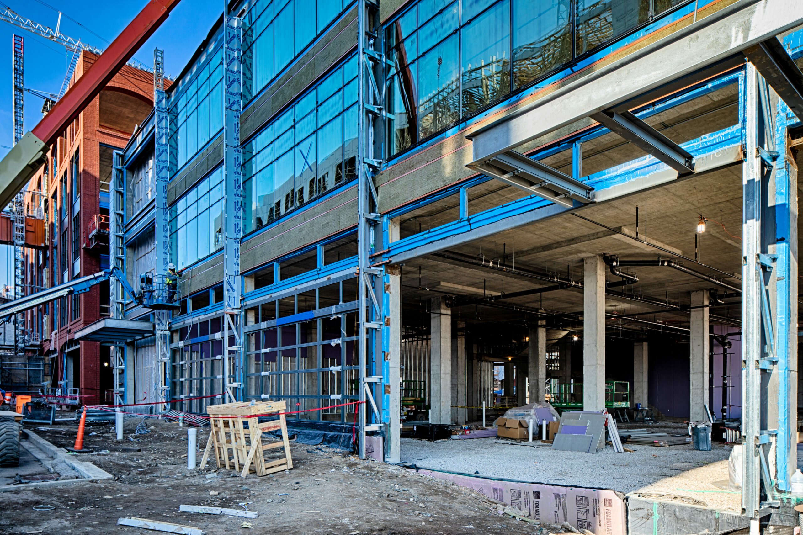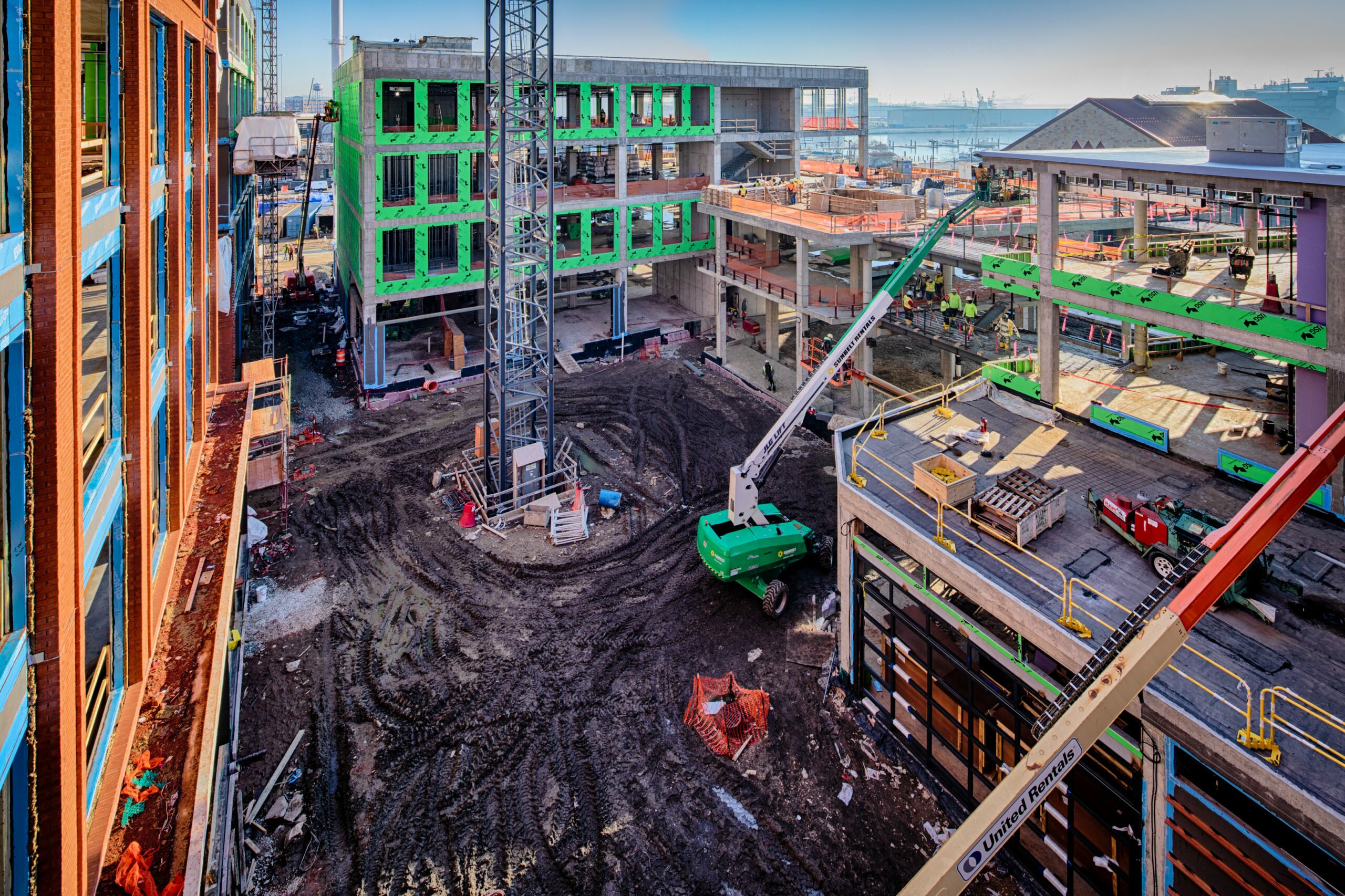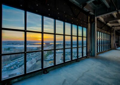 Big things are happening on the Port Covington construction site this month! The construction team is installing floor-to-ceiling windows in Rye Street Market that will provide ample natural light to these waterfront offices. At 2455 Banner Street, the team is putting up drywall and sprinklers in the future offices on the upper floors and installing windows in the first-floor retail spaces. These buildings are taking shape quickly, and we can’t wait to see them fill with activity! Click through the photos below for a behind-the-scenes glimpse of progress in Port Covington.