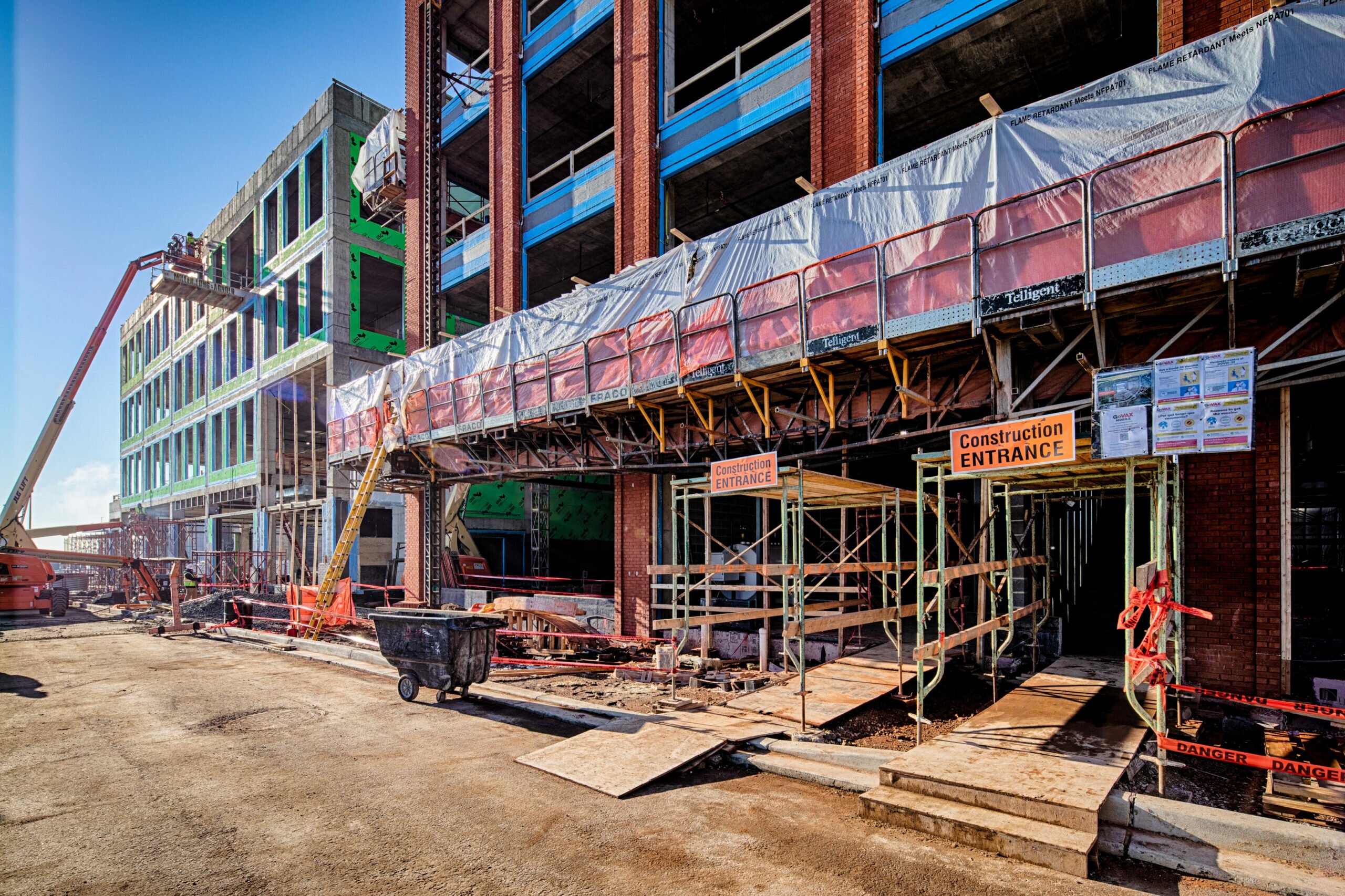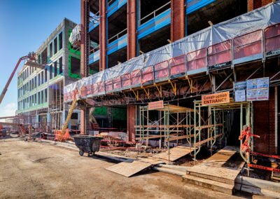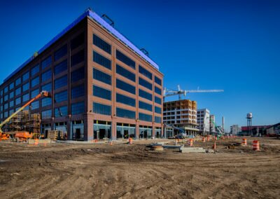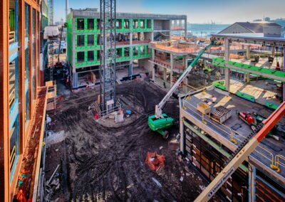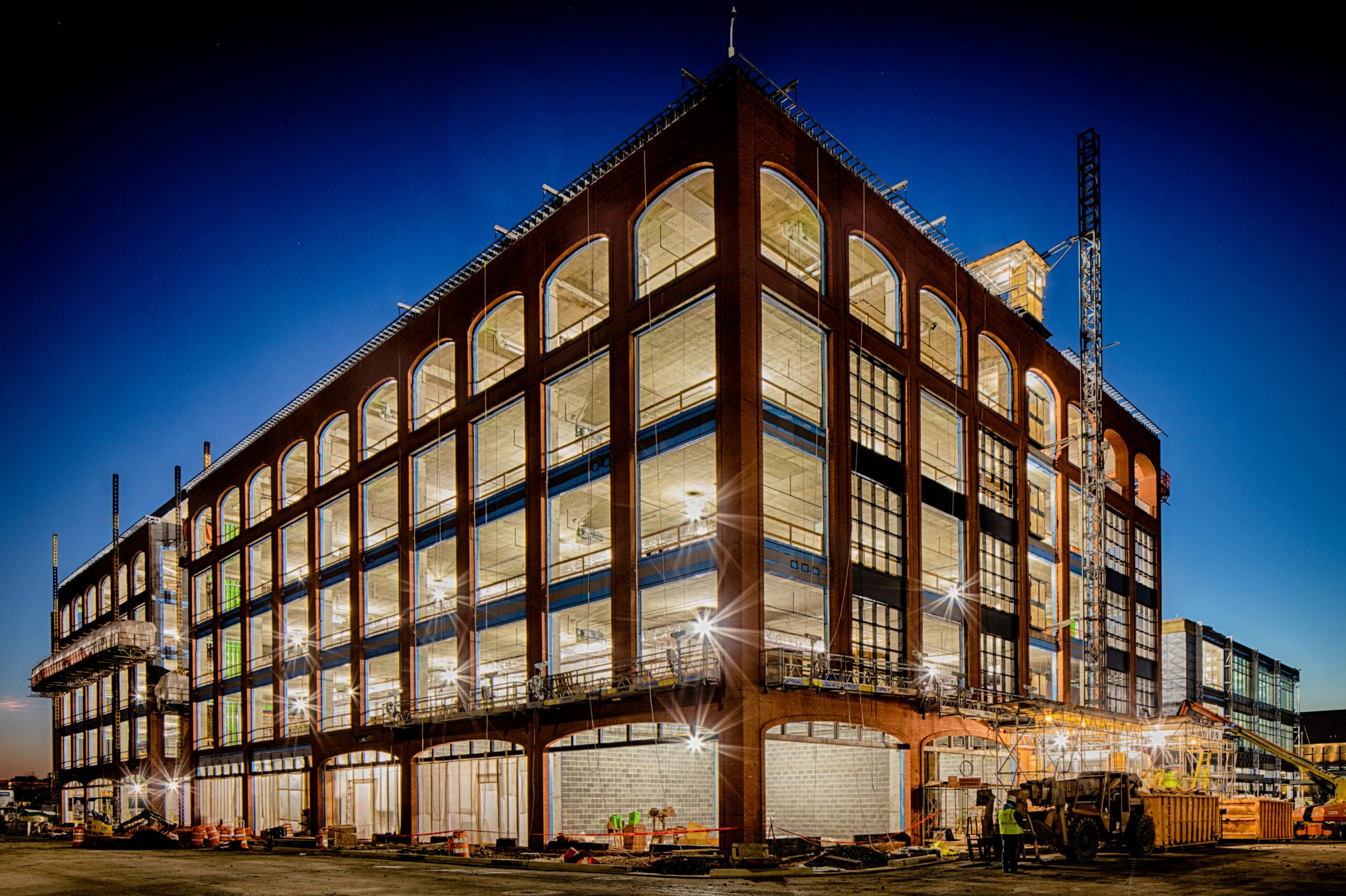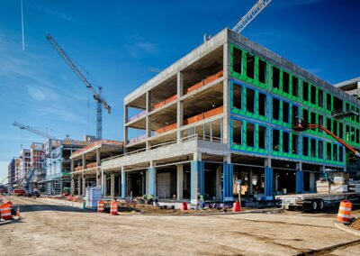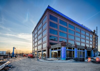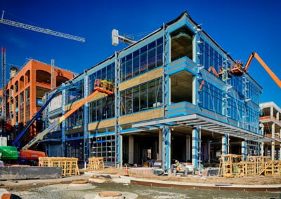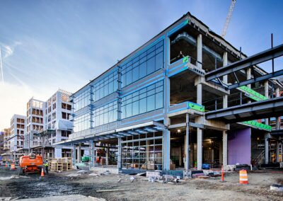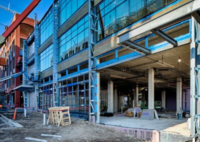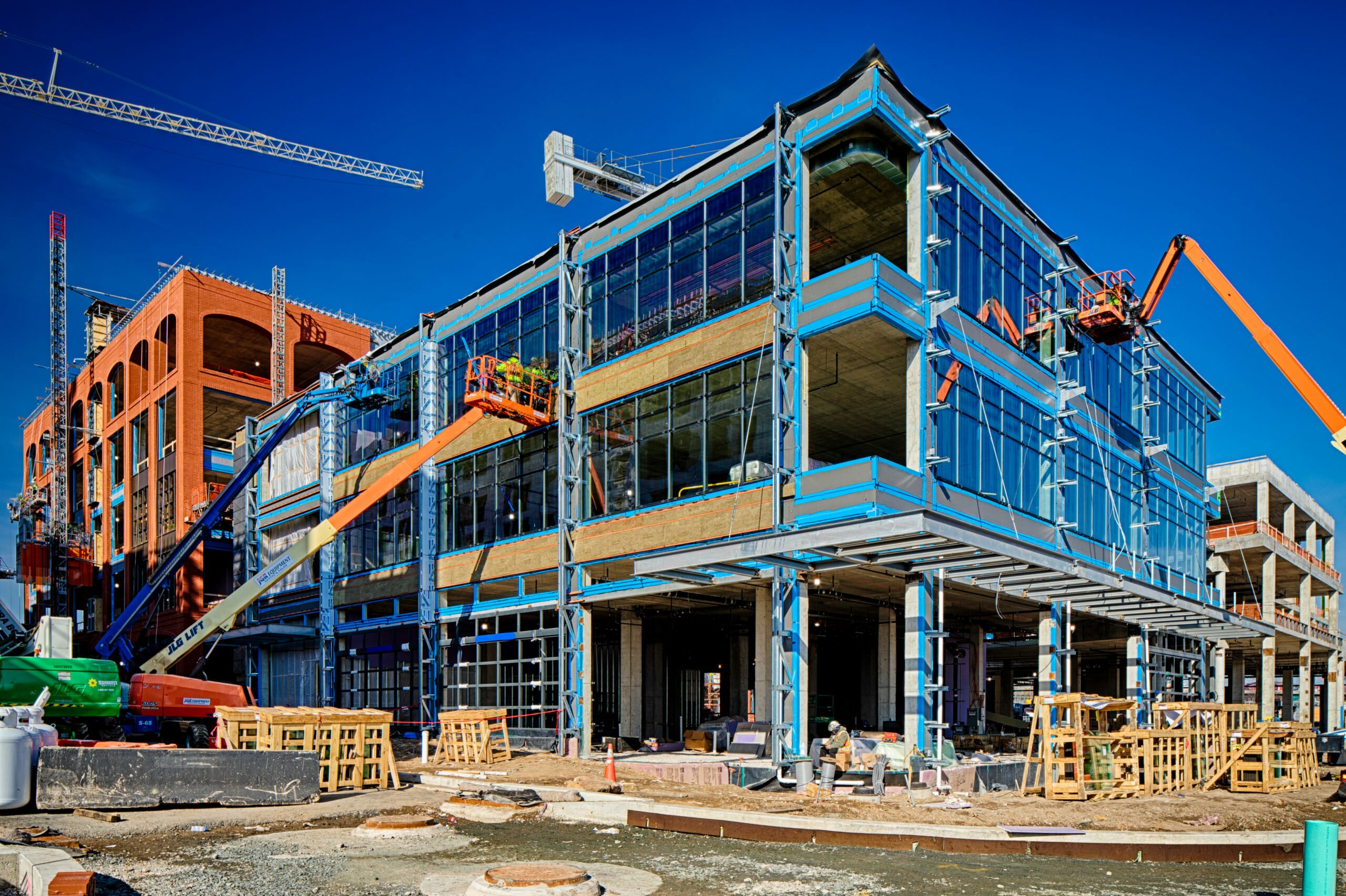 Big things are happening on the Port Covington construction site this month! The construction team is installing floor-to-ceiling windows in Rye Street Market that will provide ample natural light to these waterfront offices. At 2455 Banner Street, the team is putting up drywall and sprinklers in the future offices on the upper floors and installing windows in the first-floor retail spaces. These buildings are taking shape quickly, and we can’t wait to see them fill with activity! Click through the photos below for a behind-the-scenes glimpse of progress in Port Covington.